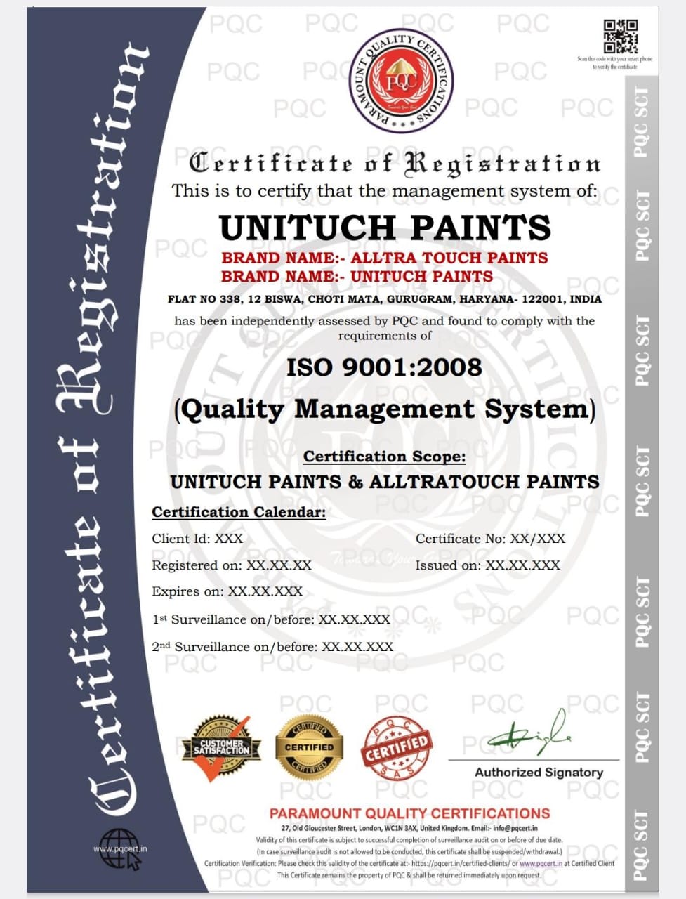 UNITUCHPAINTS. an ISO 9001:2008 certified company engaged in building beautification and restoration, was incorporated in the year 2002 and is managed by technocrats and professionals. We take the proud to introduce for the first time in the nation the exclusive range of “UNITUCH PAINTS Textures” which includes the designer and decorative coatings with multicolor and special effects, followed by the UNITUCH Uni granim “” – The Concrete Marble is the collection of Stones Venners, Manufactured Stone, Bricks, Wooden Patterns, Pebbels and River Rocks for your walls. Uni Granim provides your Office, Residential & Commercial Place a unique and artistic look in compare with other options available in the market.